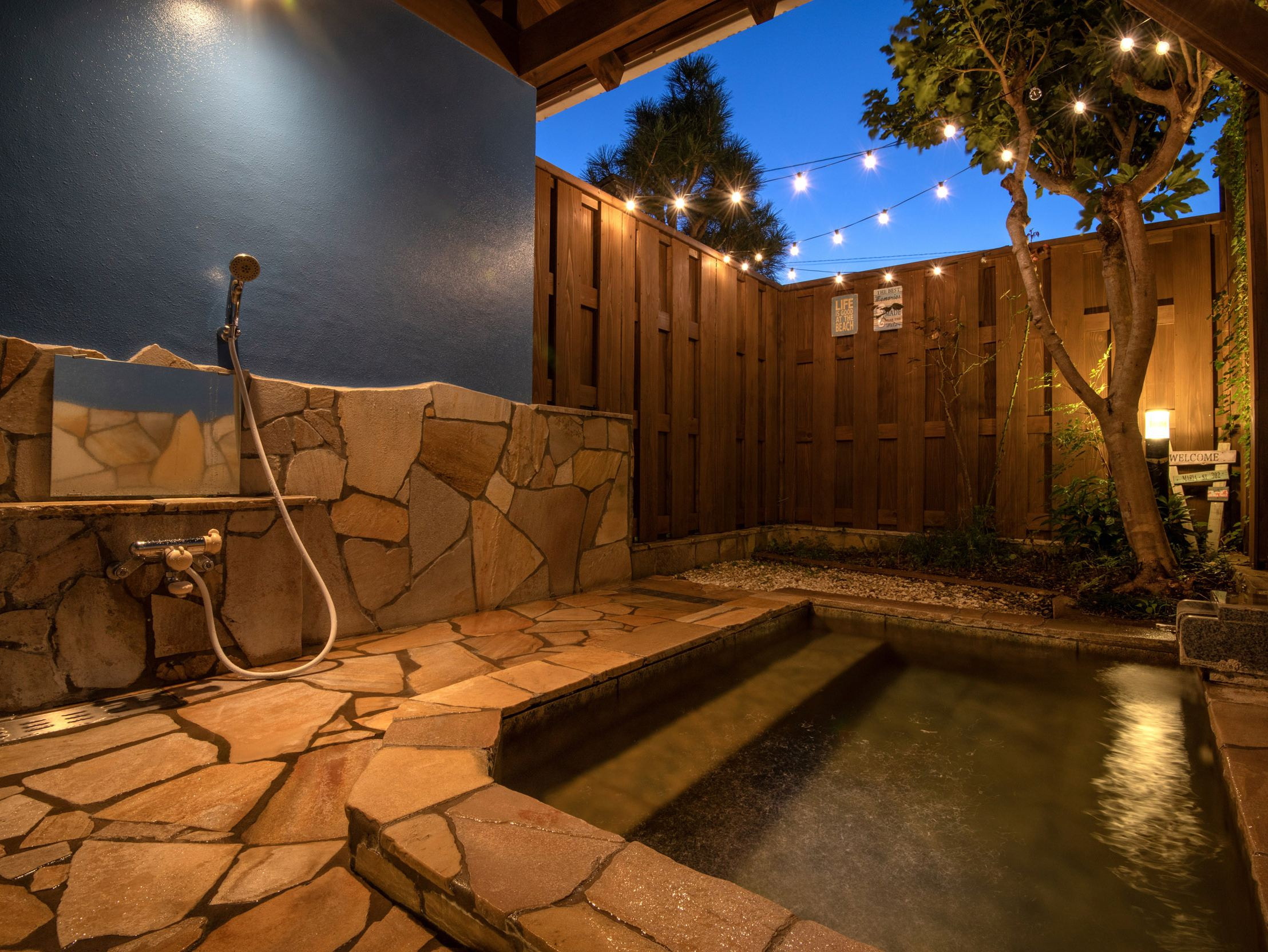 当館のコンセプトに合わせた南国スタイルの貸切露天風呂